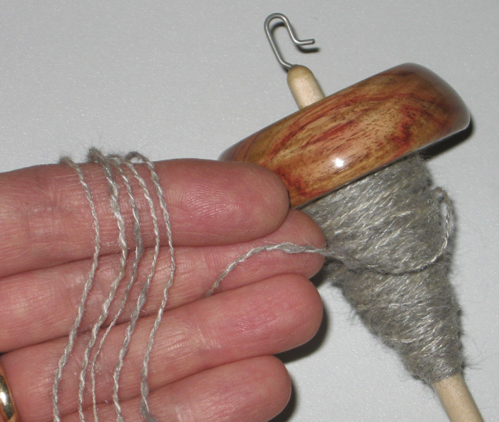 It's fascinating how tools train us as we use them. In this case, it was a matter of learning to trust the spindle, which isn't how I started out with it. ...I'd seen pictures of spindles like this before -- on the Internet, in Bette Hochberg's book Handspindles, and probably in magazines -- but I'd never met one "in person". In my imagination, this had always looked like a slow spindle that would spin for just a while, then stop.