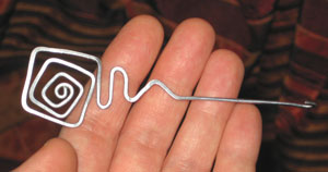 They say Necessity is the mother of Invention: my search uncovered a reel of galvanized steel wire -- and a hammer, and a little anvil. The result (left) is beyond pleasing. I'm absolutely delighted with it!